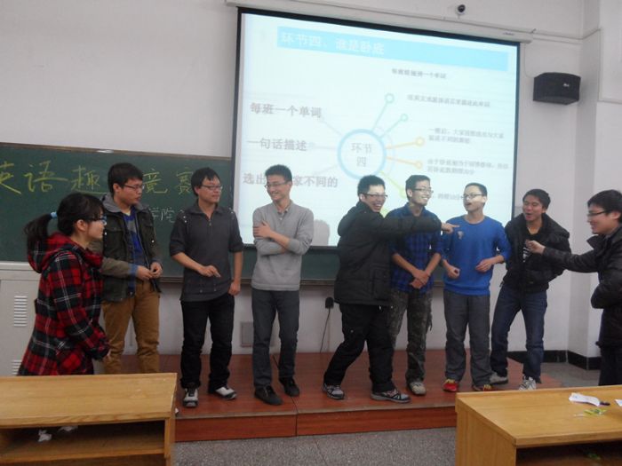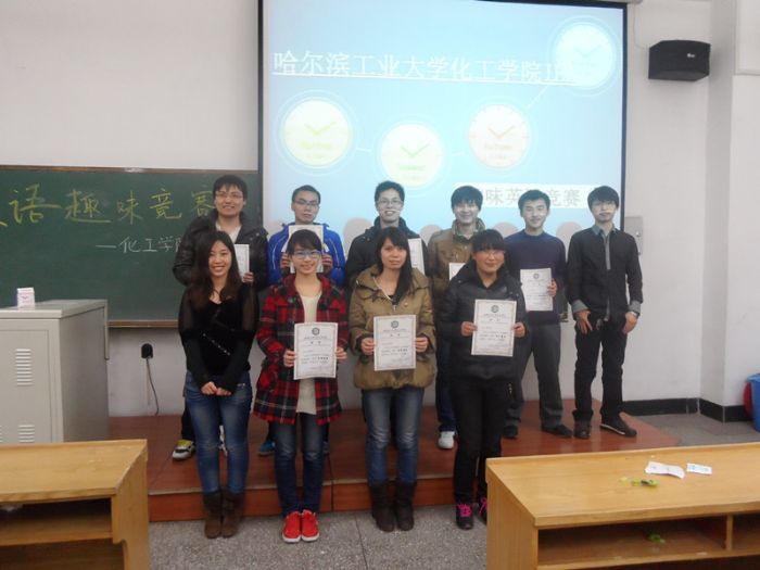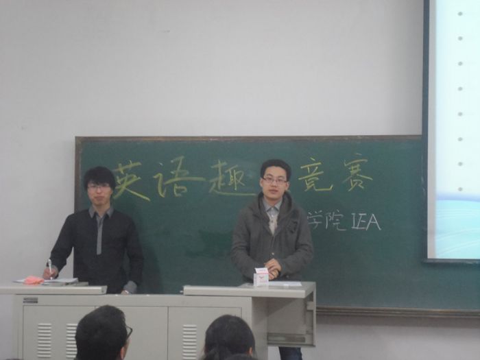 为丰富学生课余生活,提高学生英语学习能力,寓教于乐,创建良好的校园文化氛围,化工学院学生联合会国际精英协会(IEA)于2013年3月24日在一校区正心楼105教室成功举办化工学院趣味英语知识竞赛。 本次趣味英语竞赛,所有参赛者按班级分为九个团队,在全英文环境下,以团队的形式展开对抗。比赛内容包括快速记单词、“心有灵犀”猜单词、爆破音吹蜡烛、英语版“谁是卧底”四个项目,比赛采用积分制进行。主持人幽默风趣,气氛活跃,各团队成员配合默契,团结一致,出色地完成了四项比拼。在比赛过程中,同学们滑稽的表情、夸张的动作和风趣的语言,深深地留在了参加活动的每个人心中,同学们学在其中,更乐在其中,极大地增加了同学们对英语学习的兴趣。 最后,主办方为参赛的团队和队员发放了奖状和奖品,并合影留念。