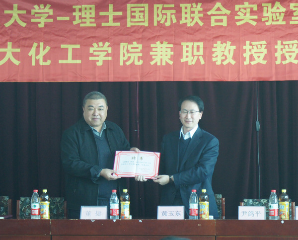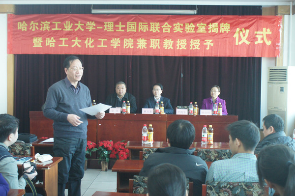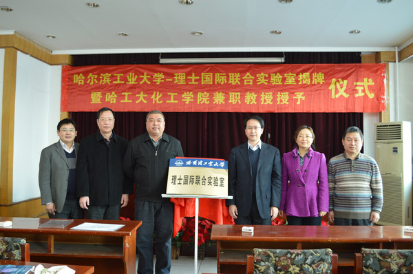 2013年3月29日,哈工大-理士国际联合实验室揭牌暨化工学院兼职教授聘任仪式在理学楼308举行。化工学院79级校友、理士国际技术有限公司副总裁董捷、化工学院院长黄玉东、副院长杨春晖、应用化学系主任安茂忠、副主任王殿龙等出席了仪式。仪式由化工学院党委副书记岳会敏主持。 化工学院院长黄玉东教授代表学院致辞。他代表学院对董捷先生的到来表示热烈欢迎,对理士国际在化工学院建立联合实验室表示衷心的感谢,并预祝双方合作取得丰硕成果。黄玉东院长说,高校的核心任务是人才培养,学校培养的学生既要有过硬的专业知识,又要有积极面向社会、努力回报社会的责任感,聘任董捷先生担任化工学院兼职教授,就是希望董捷校友把自身宝贵的人生体验、丰富的企业管理和创业经验传授给学生,助推化工学院的人才培养,他对董捷先生欣然受聘化工学院兼职教授表示感谢。 董捷校友与化工学院副院长杨春晖教授为“哈工大-理士国际联合实验室”揭牌后,应用化学系主任安茂忠教授介绍了董捷先生个人简历,黄玉东院长代表学院为董捷先生颁发了学院兼职教授聘任证书。 董捷校友在讲话中说,过去在哈工大的学习生活,是自己作为哈工大人永远的骄傲和自豪,自己能够被聘为化工学院兼职教授,感到无比的感动和激动,他希望以此为契机,与学校在科研、人才培养等方面建立长久的合作关系,为哈工大的发展尽一份自己的力量。同时,董捷校友还介绍了理士国际集团有限公司的情况和发展前景。 仪式结束后,董捷校友与到场的师生进行了热烈的交流。