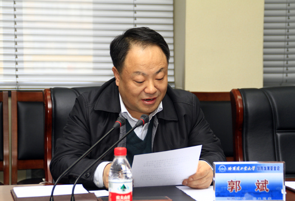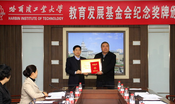 3月29日上午,哈工大教育发展基金会纪念奖牌颁发仪式在行政楼616会议室举行。安徽理士电源技术有限公司向哈工大教育发展基金会捐赠60万元,用于哈工大-理士实验室建设。校党委书记、教育发展基金会理事长王树权为捐赠单位代表、我校校友董捷颁发了捐赠纪念奖牌和证书。 基金会副理事长、副校长郭斌宣读颁发决定 校党委书记、教育发展基金会理事长王树权为捐赠单位代表颁发奖牌和证书 校党委书记、教育发展基金会理事长王树权讲话 合影留念