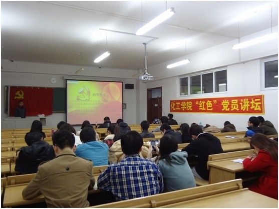2013年3月31日18:30,化工学院 “红色讲坛”第十六期在正心楼314教室成功举行。各学生党支部的党员与积极分子参加了本期讲坛,本次红色讲坛以 “中国梦”为主题,主讲人从不同角度做了精彩讲演。 本次讲坛的5位演讲人分别是侯超、蒋丽琴、康红军、王雅静和褚宏举。演讲者从中国梦的出处和它的深刻内涵以及它对于今后中国发展的重要意义等方面进行了深刻讲解。演讲者通过结合生活中的具体事例,进行了生动而详细的讲演。在座的党员和发展对象认真聆听,获益良多。侯超同学更是号召大家将个人梦想和“中国梦”结合起来,并把它们转变为学习、工作的不竭动力。 化工学院“红色讲坛”是提高化工学院党员党性修养的重要平台之一。讲坛结合重大时间节点及重要主题,以主题演讲的形式,提高学生党员的理论水平,锻炼学生党员的思辨能力,提升学生党员争先意识,切实发挥党员先锋模范作用。