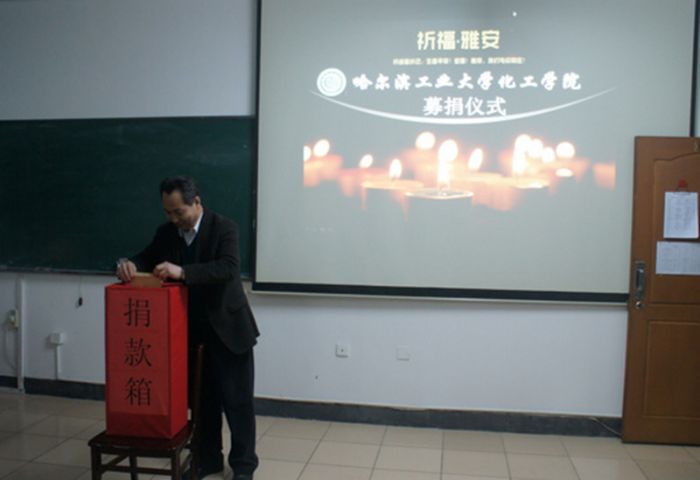 4月20日,四川省雅安市芦山县发生7.0级地震,灾害给当地造成了严重的人员伤亡和财产损失。 一方有难,八方支援,4月24日,化工学院党委向全院师生发出倡议,号召学院师生为雅安地震灾区举行募捐,活动得到了学院师生的积极响应。4月25日下午,募捐仪式在理学楼801举行,学院师生纷纷慷慨解囊,贡献爱心,希望可以为雅安地震灾区渡过难关尽一份绵薄之力。