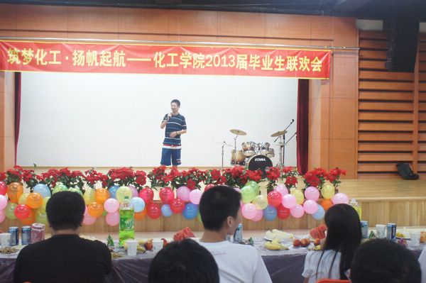 伴着夏日的阳光,又到了一年的七月,到了一年中欢送毕业生离校的日子。2013年7月7日,化工学子齐聚活动中心101,诉说同窗情怀,感恩老师教诲,向母校致以谢意,为化工送上祝福。化工学院毕业生辅导员贺金秋出席了联欢会。 联欢会在开场舞《Gentleman》轻松欢快的氛围中拉开序幕,辅导员的《再回首》将在场的所有观众带入了对往昔岁月的深深怀念当中。紧接着,游戏环节让大家暂时忘记了离愁别绪,仿佛又回到了那些年一起欢乐嬉戏的日子,倍感同窗的情谊。二人合唱《南方》和《北京北京》、团体舞《舞蹈串烧》、独唱《无地自容》、《谁明浪子心》、《直到永远》等将联欢会推向了高潮。班级大合唱《我相信》表现了毕业生们追逐梦想,扬帆起航的强大信心,以及对未来的美好憧憬。最后,全体师生起立共唱同一首歌——《朋友》,将联欢会再一次推向了高潮,此刻,同学们的心和老师以及学校紧紧连在了一起。 联欢会以独唱、合唱、舞蹈等形式表达了毕业生对大学生活的热爱和留恋,节目精彩纷呈,其间穿插的互动游戏更活跃了晚会气氛,拉近了师生及学生们的距离。毕业生们在朴实无华的哈工大校园收获了果实,他们将怀揣着各自的梦想走上社会,迈向更加美好的明天,同时也祝福母校和学院的明天更加辉煌!