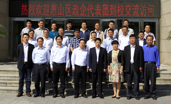 9月5日,无锡市惠山区区长顾中明、副区长曹文彬一行15人来校访问。双方在科学园国际会议中心206进行了科技合作交流。校党委书记王树权、校长助理梁迎春、工业技术研究院院长助理赵轶杰、化工学院院长黄玉东、党委书记姜兆华、副书记岳会敏、应用化学系主任安茂忠、材料学院王若维等出席交流会。会议由科研生产管理中心主任刘光惠主持。 校党委书记王树权代表学校对顾中明一行表示欢迎。他在讲话中说,惠山区地处长江三角洲、无锡市西北部,有着得天独厚的区位优势。近年来当地经济发展迅猛,对各领域高端技术极为重视。哈工大的发展与社会需求紧密结合,科技成果转化也与学校发展相辅相成,因此希望双方能够抓住机遇,在相关科研领域找准合作目标,结合当地资源和优势进一步拓展合作范围。他表示学校愿意为服务惠山区经济发展提供全方位支持,将更多成熟的产业化项目和科技成果带到当地企业,共同推进政产学研合作。 工业技术研究院院长助理赵轶杰作了哈工大科研情况介绍,化工学院院长黄玉东作了哈工大无锡新材料研究院情况汇报。会上,玉祁街道办主任徐立峰、化工学院党委书记姜兆华进行了2013年度“玉祁新才”奖学金交接仪式。随行企业家代表还就关心的技术研发问题与我校专家进行了深入交流。 顾中明在讲话中感谢哈工大对促进当地企业科技成果产业化给予的帮助,同时介绍了惠山区概况。他说,作为一所历史悠久、学风严谨、特色鲜明的著名高等学府,哈工大在航空航天、新材料研究、高端装备制造、机器人开发等领域具有举足轻重的地位,在推动地方经济发展方面作出了突出贡献。他表示,惠山区将全力支持无锡新材料研究院的发展,积极为地方企业搭建创新平台,并希望双方在原有合作基础上继续扩大交流范围,全力深化政产学研合作,最终实现“双赢”的目的。 代表团还分别参观了我校机器人技术与系统国家重点实验室和先进焊接与连接国家重点实验室。 合影 座谈会现场 2013年度玉祁奖学金交接仪式 参观实验室
