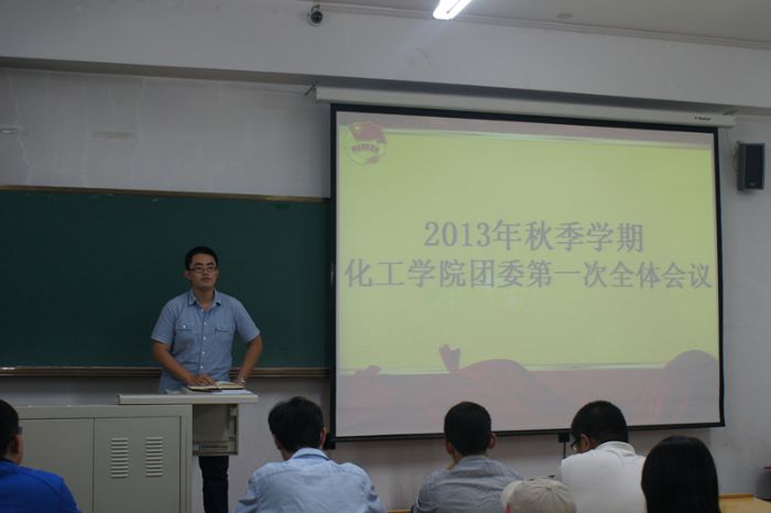 9月14日晚,2013年化工学院秋季学期团委第一次全体会议于正心217顺利召开。化工学院学生联合会全体成员及11、12级各班团支部书记参与此次会议。会议由化工学院本科生辅导员、团委书记李佳杰主持。 会上,李佳杰老师就学院学生联合会成立背景、发展情况做了简单介绍,并对化工学院团委组织的学生干部的培养模式做了详细说明。李佳杰老师指出学院团委为同学们的成长提供了广阔的平台和丰富的资源,每位同学均能在自己的岗位上做出一份事业。他同时希望各位同学能够脚踏实地,取长补短,认真负责,在谋求自身发展的同时,为化工学院进步奉献自己的一份力量。随后,学生联合会三个方向主席分别对自我方向的工作计划进行阐述。 此次全会使每位化工学院团委组织成员明确了目标,清晰了责任;增进了我院团委组织内部的交流,为化工学院学生活动的进一步发展打下了坚实的基础。