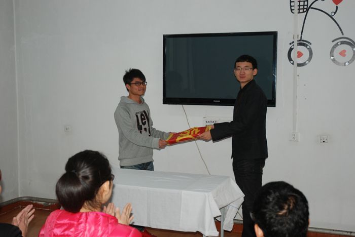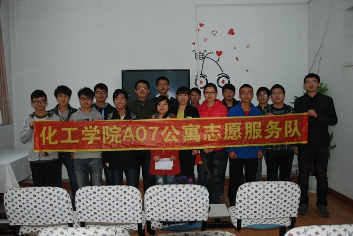 2013年10月11日,化工学院A07公寓志愿服务小队交接仪式在七公寓电视厅成功举行,七公寓楼长李静老师、化工学院团委书记李佳杰、首届公寓志愿服务队代表,第二届公寓志愿服务队全体队员参加了交接仪式。 奉献、感恩是中华民族的传统美德,作为化工学子应继承和发扬这种精神,在化工学院“爱之翼”志愿服务团队的组织下,新一届公寓服务小队成功组建,此小队成员有12级预备党员和积极分子组成,他们在公寓中充分发挥党员的带头先锋作用,用实际行动回报公寓,带动身边同学们积极参与共建公寓的工作中。 在仪式中志愿者谢浩添代表志愿服务小队发言,他表示志愿小队一定积极配合公寓工作人员的工作,用实际行动来感恩公寓。李静楼长首先对化工学院A07志愿服务小队一年的工作予以了肯定,并对新的队员提出了希冀,希望志愿者们可以充分利用资源,协助公寓阿姨保质保量完成公寓共建工作。随后,首届公寓志愿服务队代表与第二届志愿者代表进行了服务条幅交接仪式。最后李佳杰老师总结道:公寓是我们的家,爱护公寓、感恩公寓是我们的责任,希望志愿者们可以利用课余时间来为公寓的建设做一些实事,为化工学院与A07公寓的公寓共建工作贡献一份力量。 预祝化工学院第二届A07公寓志愿者服务队可以圆满完成服务工作,与公寓的工作人员共同营造和谐、美好的公寓。