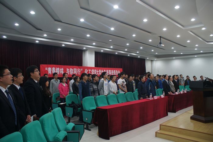 为发挥典型引领、榜样育人的作用,2013年10月18日18:30,“青春榜样,与你同行”化工学院大学生先进事迹报告会在二校区文体活动中心330隆重举行。校团委书记魏红梅、研究生工作部副部长李岳、基础学部副主任杨海、化工学院院长黄玉东、党委副书记岳会敏、基础学部辅导员刘鹏、化工学院辅导员李佳杰及化工学院全体大一同学出席报告会。 报告会在庄严的哈工大校歌中拉开序幕。化工学院四名优秀大学生和一个优秀班集体讲述了他们的成长故事:2013级硕士研究生闫春秋,他在学习的道路上踏实认真,在学生工作中奉献青春,他用亲身经历告诉同学们,在大学生活中,要通过明确的大学生涯发展目标寻找奋斗的动力源泉。2013级硕士研究生夏琦兴,学习成绩优秀,科研成果突出,发表研究论文三篇,曾获大学生创新创业计划项目校一等奖、宝钢奖学金、校“十大自强之星”等奖励,他同大家分享了他在科技创新中的心得体会:科研工作中要勇于尝试、敢于坚持,要注重发挥团队的力量,要学会不断总结提高。2010级本科生梁成豪,面对挫折,永不气馁,有效的学习方法和乐观向上的生活态度使他的成绩始终名列前茅,最后以专业第一的成绩保送研究生。2010级本科生鲁琪,在大学生活中目标明确,积极寻求机会锻炼自我,提升能力,在学生工作中开创了一片属于自我的天地。1014212班,学习氛围浓厚,成绩优异,班级向心力、凝聚力强,不让一名同学掉队、助推每一名学生的成长,积极参与学校及学院组织的各项活动,表现突出,起到了良好的模范带头作用,曾连续两年获得校“三好班级标兵”、“优秀团支部标兵”等荣誉称号。他们用勤奋与责任谱写了自己的青春赞歌,生动诠释了“规格严格,功夫到家”的哈工大精神,让在场的每一位同学为他们自强自立、坚忍不拔的精神所感动,为大一的同学们提供了成长的借鉴和思考。 报告会后,化工学院院长黄玉东教授做了讲话。他勉励大一同学以作报告的先进集体和个人为榜样,自觉弘扬哈工大精神,大学期间要学会学习、学会生活,更要热爱学习,热爱生活,要不断提高自身综合素质,努力把自己培养成为拔尖创新人才,成为国家和社会栋梁之才。