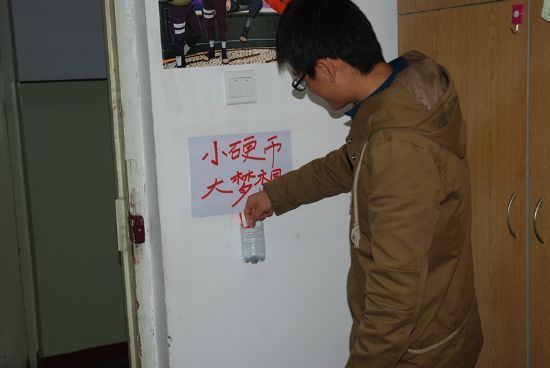 10月21日,化工学院 “小硬币,大梦想”爱心志愿服务活动在大二年级寝室顺利开展。 本次活动主要是面向化工学院大二年级同学,志愿者们进行“小硬币,大梦想”的活动宣讲并进入寝室安装储钱容器。该活动为“爱心一元基金”募捐的创新方法,旨在号召同学们在平时积攒硬币,积少成多,为爱心志愿活动贡献一份自己的力量。 当志愿者进入同学寝室进行宣传时,同学们都纷纷表示对活动的支持,并且积极帮助志愿者安装储钱容器,充分展示了同学们对志愿服务的热情和支持。值得一提的是,所有的储币容器都是由志愿者利用废饮料瓶改造而成,平时并不起眼的废品,在志愿者的巧妙利用下,变成了爱心储币器。 在日常生活中,也许没有人会在意一个一角钱的硬币,可是当一个个一角硬币被积攒起来的时候,也会发挥出很大的力量。相信化工学院“爱心一元基金”通过逐步的积累,可以为更多的贫困儿童带去他们需要的关爱。助力梦想,化工在行动。
