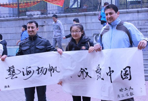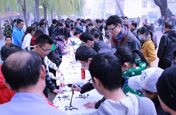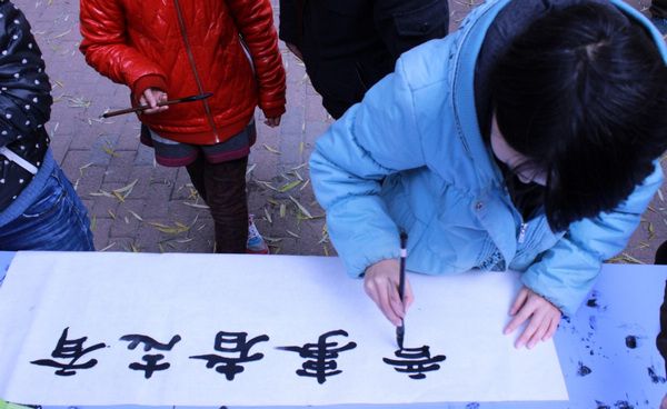 书法是最具中国特色的文化结晶之一。11月3日,为传承中华传统文化,由校研究生会、化工学院研分会、墨韵书法协会联合举办的书法艺术文化交流活动在学苑楼广场成功举办。 中午11点,活动正式开始。活动很快得到了同学们的积极响应。其中,几名留学生在和现场同学做了简单交流之后,就拿起毛笔有模有样地写了起来,在欣赏自己“大作”的同时,也不忘向书法协会的同学请教。书法协会的成员耐心专业地为大家讲解并示范“握笔”、“转承启合”等要领,同学们听得认真,写的仔细。 随着参与人员的增多,工作人员将活动现场分为两块:一边是互动教学,同学们重在亲自动手认真练习,一边是题字留念,有书法基础的同学展示着自己的书法实力。现场气氛非常活跃,来往行人都驻足观看,跃跃欲试。整齐修长的篆体,端严峻逸的隶书,行气流畅的行书,苍劲有力的楷书,其中也不乏初学者稚嫩的笔法“自成一体”,令人印象深刻。 此次活动吸引了广大师生特别是外国留学生的积极参与,活动一直持续到13:00正式结束。此次活动不仅彰显了书法艺术的魅力,更是为大家提供了一个交流传统文化的平台。