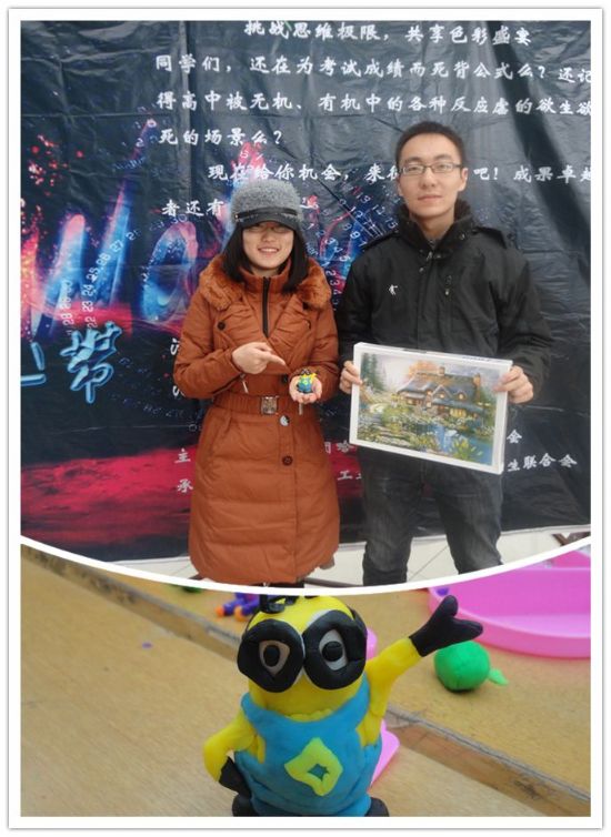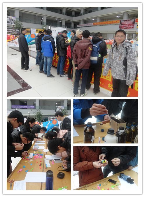 为提高我校学生创新意识,丰富同学们的课余文化生活,由校团委主办,化工学院科学技术协会承办的第六届校园科技吉尼斯之色彩地带于11月10号在太阳成tyc234cc二校区阳光大厅内火热展开。 本活动主要内容包括化学颜色反应、化学魔术揭秘和趣味橡皮泥三个项目。其中化学颜色反应是传统项目,参赛者用给定的化学药品自行进行选择并设计实验方案,在规定时间内利用各类化学反应展现颜色变化,使用最少的药品展现出最多的颜色的选手获胜。趣味橡皮泥项目是利用主办方提供的多彩橡皮泥捏出既精美又有创意的工艺品为胜。并且,在活动过程中穿插一些由工作人员精心准备的化学魔术,吸引了众多同学驻足围观和积极参与,现场气氛热烈。 化学颜色反应项目中,随着反应完毕的试管不断增多,一种种颜色呈现眼前,化学的神奇不断地展现出来。趣味橡皮泥项目中,一个个造型奇特的玩偶纷纷亮相,其中来自交通学院的一对情侣凭借他们精美的橡皮泥版小黄人获得一等奖。 本次活动为全校学生提供了一个很好的创新平台、展示平台和锻炼平台,同时激发了学生对理论应用于实践的兴趣。对培养学生的创新实践能力起到了积极的促进作用。