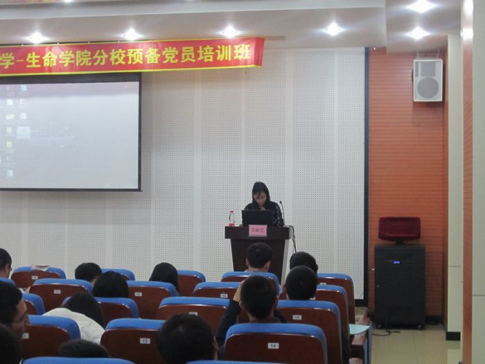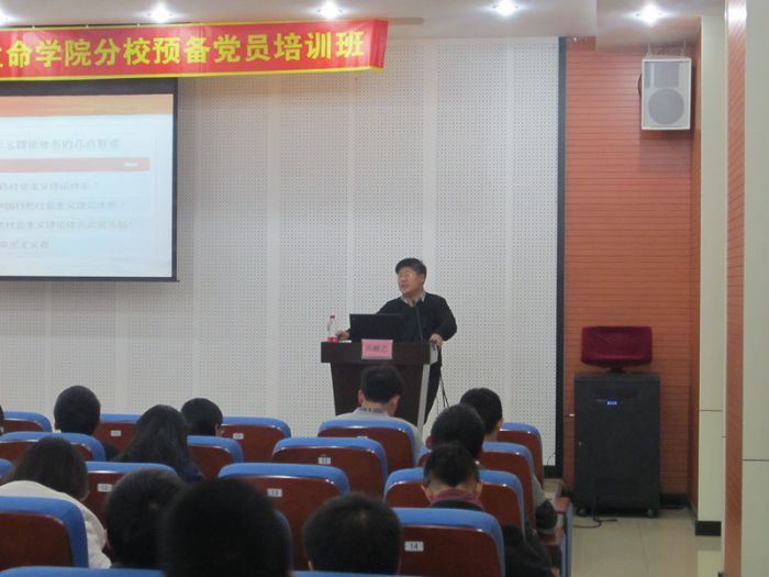 2013年11月19日,太阳成tyc234cc化工学院—学院—生命学院预备党员党课第五讲在活动中心227举行。人文学院党委副书记高献忠以“中国特色社会主义理论体系”为主题,为党校学院带来一堂生动的授课。 高老师以莎士比亚的名言“马,马,一马失社稷”开篇,强调了理论对于实践的重要意义,明确了社会主义理论体系内涵包括邓小平理论、“三个代表”重要思想、科学发展观等重大战略思想,并提出每个时代都有其相应的理论体系和时代意义。高老师重点讲解了社会主义理论体系的意义,以及什么是社会主义和怎样建设社会主义。关于党的建设方面高老师也有其独到的见解,最后,高老师以黑格尔的名言“一个民族有一些仰望星空的人,他们才有希望”来激励党校学院们,希望他们可以做一名青年马克思主义者。 课后的学员讲坛时间,由第六组的学员分享了关于十八届三中全会的心得和体会。同学的精彩演讲迎来了党校学员的阵阵掌声。