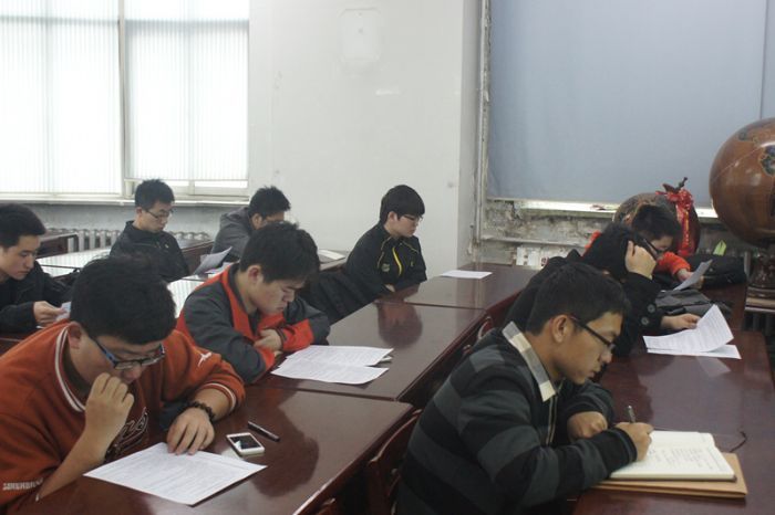 在五四青年节到来之际,化工学院团干部集中在理学楼901开展了理论学习交流活动,对习总书记近期重要讲话精神进行了学习贯彻。化工学院11级和12级本科团支部书记、团委书记李佳杰参加了活动。会上,团干部们对《让青春之花绽放在祖国最需要的地方》、《使社会主义核心价值观的影响像空气一样无所不在》、《理想信念是共产党人的精神之“钙”》、《面向未来的赶考》等一系列习总书记近期的重要讲话精神进行了学习理解和讨论交流。尤其是5月3日习近平总书记给河北保定学院西部支教毕业生群体代表回信在团干部中引起强烈反响。1114211团支部书记花俊夫说:“文章中‘好儿女志在四方,有志者奋斗无悔’这句给我留下了深刻的印象,作为面临毕业选择的我,应该努力将自我个人的梦想融入中国梦中,通过自己的努力,为家乡的建设、祖国的发展贡献一份力量”“作为哈工大人,我们应勇敢得承担起属于我们的责任,在校内努力提升自我,走入社会后用自我所学服务大众,服务社会,让青春变得更加多彩。”1214212团支部书记张傲说道。团干部们在讨论交流中加深了对讲话精神的理解,也更加深刻地认识到了自身存在的差距,大家纷纷表示,对于理论要不断学习、付诸实践,用理论知识指导日常工作,让理论学习之花绽放在心中,将个人青春梦融入到伟大的中国梦中。