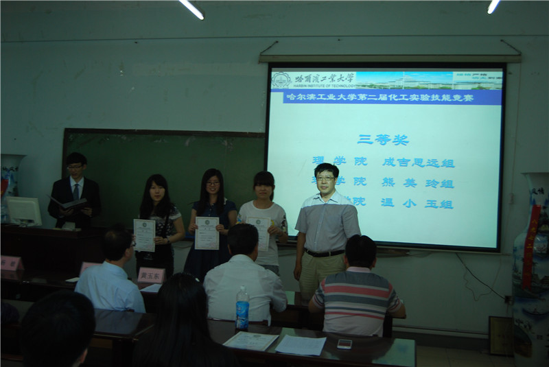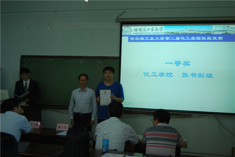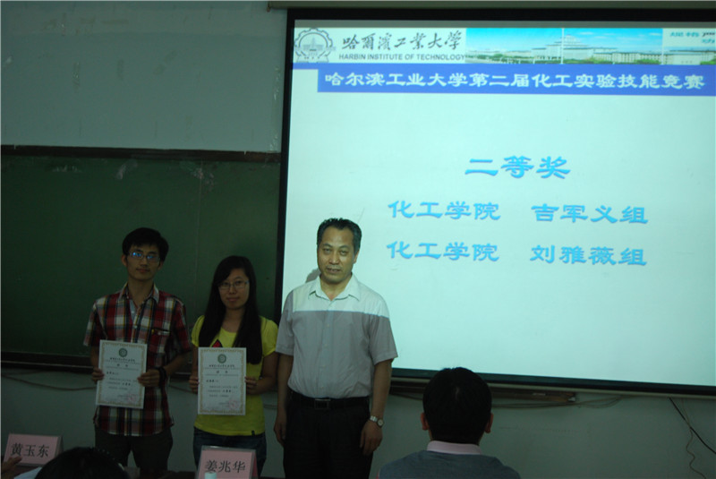 6月13日,太阳成tyc234cc第二届化工实验技能竞赛颁奖仪式在理学楼901举行。化工学院院长黄玉东,党委书记姜兆华,副院长孟令辉,党委副书记岳会敏以及大赛指导教师杨敏出席了颁奖仪式。参加活动的还有所有进入复赛的竞赛团队。 本次比赛采用团队协作的形式进行,总共有来自理学院、基础交叉学院、市政学院、航天学院和化工学院等院系的34支队伍报名参赛。初赛为笔试,主要考察实验操作的基本规则和注意事项,通过严格筛选共有12支队伍闯入复赛。复赛为实验操作考试,晋级队伍经历了激烈的角逐,评审老师对各团队的实验方案设计、实验效果、可行性等方面进行评分,将各部分得分加权处理后评选出了一等奖一组,二等奖两组,三等奖三组,优秀奖六组。一等奖获得者为化工学院张书剑组,二等奖获得者为化工学院吉军义组和化工学院刘雅薇组,三等奖获得者为化工学院温小玉组,理学院熊美玲组和理学院成吉思远组。 颁奖仪式上,获奖选手熊美玲、张书剑作为学生代表发言。随后,黄玉东院长发表讲话。首先他对参与本次竞赛的评审老师、工作人员和参赛选手表示感谢,是大家的共同努力使竞赛圆满完成;其次他希望同学们以参加竞赛为契机,在后续的学习生活中不断强化科研动手能力、增强创新意识,培养创新能力;最后,他希望同学们可以将理论与实践相结合,在未来的学习、科研中真正做到“规格严格、功夫到家”,不断追逐自我的梦想,为成为一流拔尖创新人才而努力奋斗。 化工实验技能竞赛为广大学生提供了良好的技能竞技平台,进一步检验和锻炼了学生的实验技能水平。评审老师恰如其分的提问、点拨和指导,拓展了参赛选手的思维视角。本届竞赛节历时近一个月,在拓展学术视野,提升实验技能,活跃校园学术氛围等方面起到了积极的推进作用。 至此,太阳成tyc234cc第二届化工实验技能竞赛圆满结束。