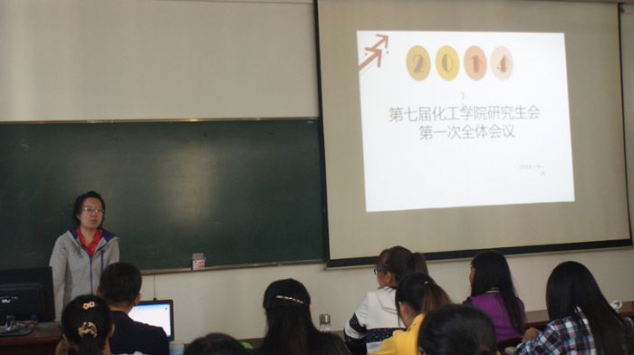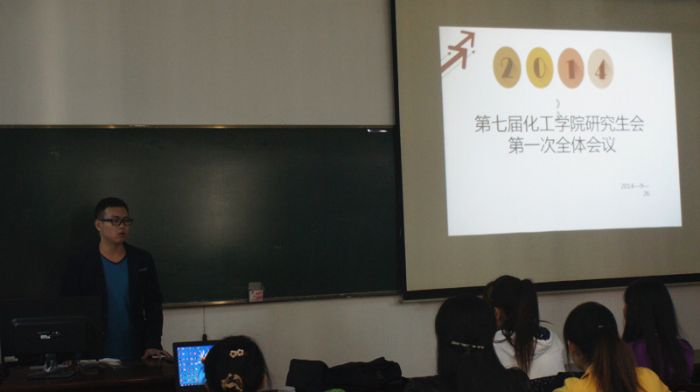 9月26日,化工学院第七届研究生会第一次全体会议在理学楼801举行。化工学院研究生协理员王玉楠老师及全体研究生会成员出席此次会议。会议由研究生会主席谷兴主持。 谷兴向全体成员介绍了研究生会各部门的主要职责和本学期重点工作,同时对研究生会的总体规划进行了阐述。他强调研究生会是一个整体,各部门在各司其职的同时也要积极协助其他部门进行各项活动的开展。各部部长简单介绍本部门的工作情况以及未来构想。随后研究生会全体成员分别做了自我介绍,增进了解,为以后工作的顺利开展打下了坚实的基础。 最后王玉楠老师与同学们分享了她的学生工作经验,以切身实践教会大家如何做好研究生的学生工作。她希望大家仔细筹划、及时接收反馈信息并对各项活动进行深刻总结;她鼓励全体同学充分发挥自己的才能,使本届研究生会全面快速发展。