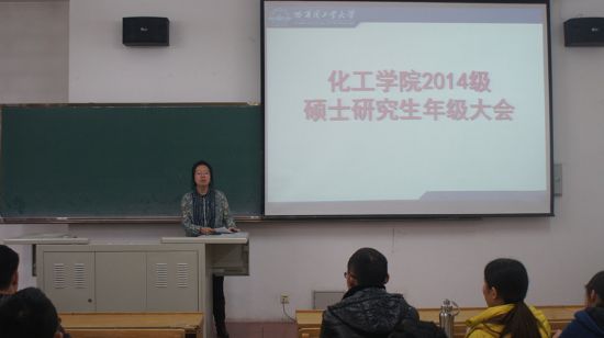 社会实践既是研究生深入社会,了解国情民生的重要窗口,也是全面提升研究生综合素质的有效途径。为了更好地推进研究生社会实践活动,10月31日中午,化工学院在正心楼109召开2014级硕士研究生年级大会,会议由化工学院研究生协理员王玉楠老师主持,全体2014级硕士研究生参加此次会议。 王老师向大家详细介绍了化工学院研究生社会实践学分要求,并通过案例介绍前几年研究生社会实践开展情况,同学们对研究生社会实践的目的和意义有了更为深刻的认识。接下来,王老师对研究生社会实践活动类别和内容做了详细说明,着重强调了社会实践证明、社会实践活动记录、社会实践报告等手册内容的书写格式和书写要求。随后,王老师介绍了化工学院特色实践活动“十人访谈”计划,对访谈对象、访谈内容、访谈途径等做了详细解释。最后,王玉楠老师叮嘱大家在社会实践活动中一定要注意人身安全,按学校要求办理相关手续和保险。 之后王老师提醒大家要对近期的相关课程考试做好复习,强调了学习成绩与专业知识的重要性,她希望大家要提早做好职业规划,通过各种平台锻炼自己,提升专业技能、丰富社会实践经历,提高个人综合素质,为未来发展打下良好的基础。
