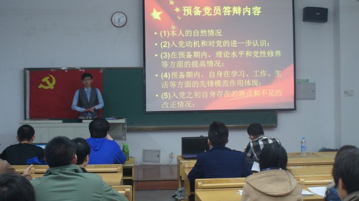为进一步加强和规范学生党建工作,在预备党员党员培养、教育和考察过程中严格把关,2014年11底,化工学院各学生党支部分别组织拟转正预备党员进行转正公开答辩。 辅导员、支部党员、积极分子以及群众代表参加了公开答辩会,党支部书记主持会议。答辩对象按照要求认真准备了7分钟的答辩陈述,介绍了本人自然情况、对党的进一步认识,着重介绍了在预备期内,理论水平和党性修养等方面的提高情况,自身在学习、工作、生活等方面的先锋模范作用体现情况和入党之初自身存在的缺点和不足的改正情况。培养人对答辩对象这一年的主要情况予以汇报。各位老师和同学对答辩者进行了提问,答辩对象认真地回答了每一个问题。答辩结束后,全体评委对发展对象进行了投票表决。会后各支部答辩小组将答辩记录和答辩结果进行了整理,对每一个拟转正党员的情况进行了讨论。