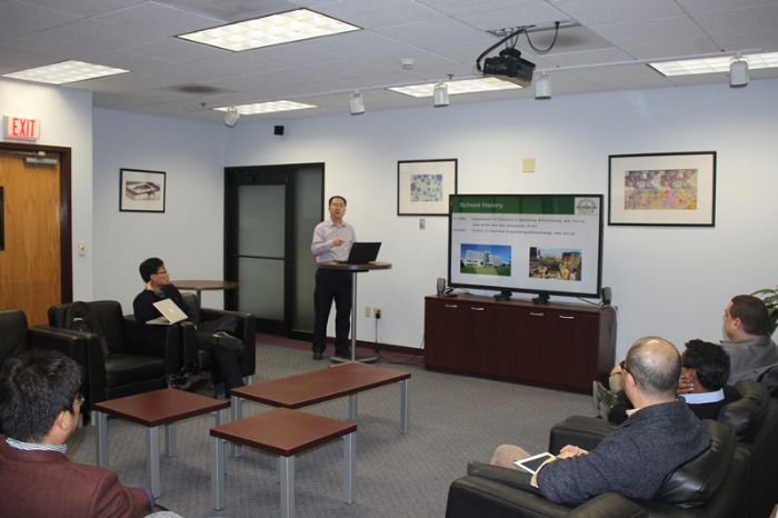 在太阳成tyc234cc研究生院和国际合作处共同资助下,由韩晓军教授和姜再兴副教授带队,8名博士生组成的太阳成tyc234cc化工学院优秀博士生太阳集团团队于11月23日顺利抵达美国纽约州布法罗,在纽约州立大学布法罗分校开展了为期一周的访问和学术交流。 交流团首先与本次太阳集团的美方负责人Paras N. Prasad教授进行了会面,在见面会上,Paras N. Prasad教授表达了对各位老师和同学的欢迎,并与韩晓军教授就本次访问的活动内容与行程安排进行了磋商确定。 学术交流和研讨活动分两场开展,在第一场学术交流会中,韩晓军教授向纽约州立大学的师生介绍了哈工大的基本情况、化工学院的历史与发展现状、研究方向等,其他团员分别展示了自己的研究课题与研究成果,双方针对相关研究开展了广泛的讨论和交流。 在第二场学术交流会中,Paras N. Prasad教授从学院学科建设、学生培养及纽约州立大学布法罗分校化工学科的发展情况等方面进行了全面的介绍。随后,纽约州立大学的师生对各自的研究工作分别进行报告,同时回答了我校师生的问题和疑惑,其中我院优秀校友,现纽约州立大学Assistant Professor Gang Wu针对他研究的课题进行了详细汇报。交流团成员纷纷表示通过学术交流和研讨,使得大家拓宽了研究的思路和眼界,对于后续开展研究工作具有深远意义。 随后,我院师生走进该校的实验室,与相关研究方向的师生进行了面对面的深入交流,从实验的开展、实验测试以及后续的处理等方面进行了详细的探讨。在整个参观和交流的过程中,各实验室的教授为我们详细讲解了实验室的具体研究工作,并对当前进行的研究项目与研究成果进行了展示。各实验室在读的研究生介绍了各自的研究工作,并就国内外生活、学习、学术研究氛围、博士后申请等交换了意见和看法。参观结束后双方进行了座谈,就化工学科的发展以及将来合作研究等方面进行了深入的交流和讨论。 纽约州立大学布法罗分校良好的学校环境,先进的实验室规划、建设和管理工作、师生们严谨的学术研究态度、优秀的学术素养、良好的交流能力给出访的师生们留下了深刻印象。大家一致认为本次国际学术交流活动为开阔我校博士研究生的国际视野,提高博士生的国际学术交流能力,拓宽博士生参与国际学术交流的平台,扩展我校在相关国际研究领域的影响力等方面均起到了积极的推动作用。