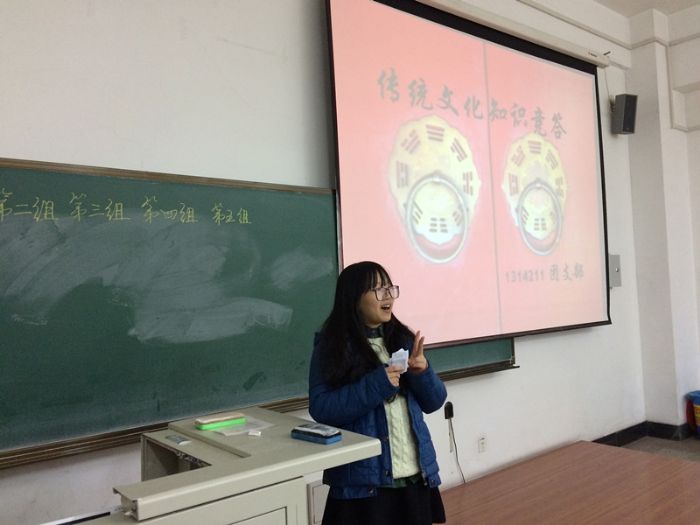 为了提升进一步团员青年文化素质,引导同学们深入了解传统文化,12月7日,1314211团支部在正心103开展传统文化知识竞答活动。化工学院12级、13级全体团支部组队参赛。 本次传统文化知识竞答内容覆盖面极广,从琴棋书画到节日习俗,从古典名著到名人诗词,涵盖传统文化的各个方面。五组选手赛前进行充分准备,赛场上绞尽脑汁,充分利用自我掌握的传统文化知识斗智斗勇,场面十分激烈。选手们对传统文化都有着丰富的储备,各组之间比分交替上升异常胶着,最后不得不通过抢答题来决定胜负。最终12级和13级组成的电化学联队赢得了比赛的胜利。 活动的举办,进一步增加了同学们在传统文化方面的知识积淀,在学院内部形成一种对传统文化知识不断探索的良好风气,对推动团员青年进一步了解我国优秀传统文化、学习践行社会主义核心价值观奠定了良好基础。