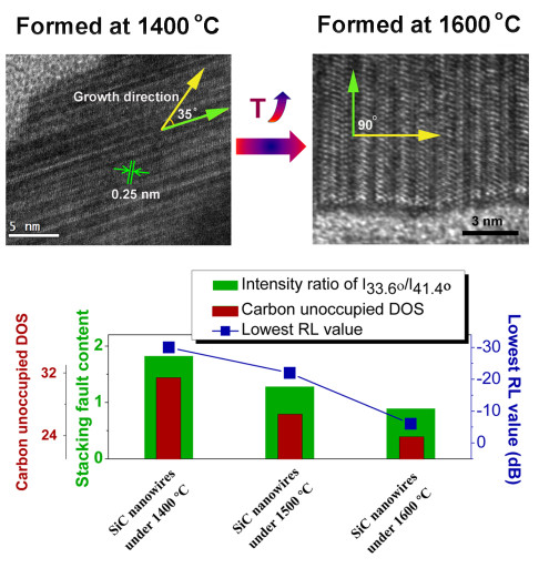 近日,化工学院14级硕士研究生学生张航宇和王欢分别以第一作者在英国皇家化学会《材料化学C》、《材料化学A》(影响因子分别为6.6)发表了题为《SiC纳米线吸波性能对堆垛层错和未占据轨道能量状态的依赖性》(《Stacking fault and unoccupied densities of state dependence of electromagnetic wave absorption in SiC nanowires》)和《共价作用大幅增强SiC/Co异质复合纳米线吸波性能》(《Covalent interaction enhanced electromagnetic wave absorption in SiC/Co hybrid nanowires》)的论文。两篇论文综合运用了表面化学、结构化学、材料学、固体物理、电介质物理和电磁学等知识,讨论了SiC基电磁波吸收材料微观结构与性能之间的关系。两名学生的指导教师为化工学院青年教师王志江副教授/博导。 SiC在上个世纪即被作为电磁波吸收材料,但是其吸波性能的调控、微观结构与吸波性能之间关联本质一直未得到很好的解决,张航宇的研究,利用同步辐射技术对SiC纳米线材料的电子结构进行了深入解析,明确了微观结构与吸波性能之间关联本质,发现提高SiC堆垛层错密度导致碳未占据轨道能量状态的提高,从而提高了SiC对电磁波的吸收能力。相关内容请参看: http://pubs.rsc.org/en/content/articlepdf/2015/tc/c5tc00405e 单一介质材料往往对高频电磁波呈现良好的吸收能力,但是在低频吸波性能较差,王欢的研究利用化学镀的方式使Co纳米粒子在SiC表面原位行核、生长,形成SiC/Co异质复合结构,通过对电子结构解析发现,SiC纳米线与Co纳米粒子之间通过Si-O-Co化学键共价结合在一起,电子在SiC与Co之间发生了流动和重新分布,改善了材料的介电常数和磁导率,最终使得SiC/Co复合纳米线具有明显高于SiC、Co物理混合的吸波性能。相关内容请参看: http://pubs.rsc.org/en/content/articlepdf/2015/ta/c5ta00303b