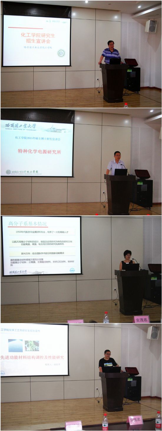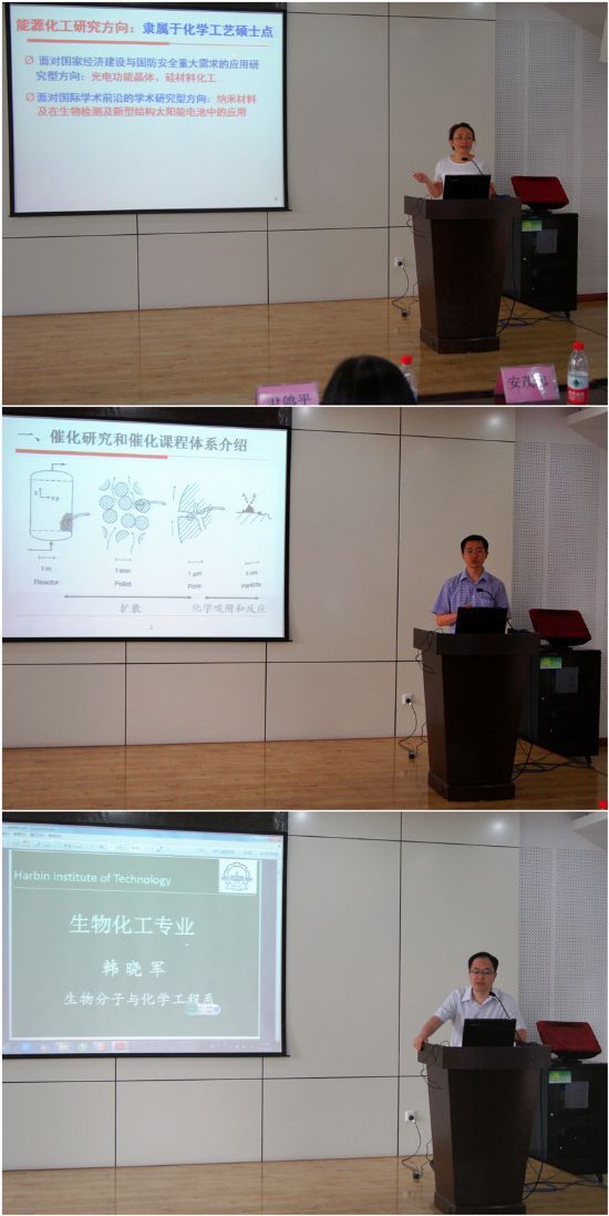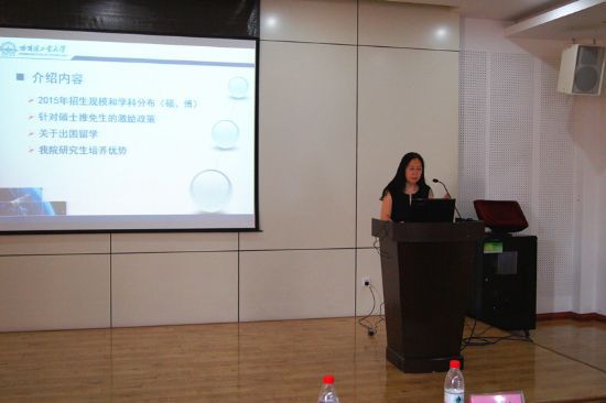 6月17日下午2点,化工学院2016年研究生招生宣讲会在新活动中心330举行。本次宣讲会旨在让广大同学进一步了解哈工大化工学院,明确化工学院研究生招生与培养的相关政策,吸引校内外优秀生源从而提高我院研究生的培养质量。化工学院副院长尹鸽平教授、副院长杨春晖教授以及各系负责人出席了本次宣讲会,此次活动吸引了来自本校及其他高校近百名学生参加。副院长杨春晖教授详细介绍了化工学院的概况,包括学院发展史、师资队伍、学科建设、研究方向、人才培养、最新的科研成果以及太阳集团合作等。尹鸽平副院长针对研究生的招生与培养情况作了详细的介绍,包括我院招生规模和学科分布、硕士推免生的激励政策、出国留学政策和研究生培养优势等。之后,各学科负责人具体介绍了本学科的情况和特色研究内容。宣讲会后还进行了现场咨询,同学们就自己关心的问题踊跃提问,老师们就研究生招生政策及相关信息进行了现场答复,给学生提供了详细周到的报考咨询服务,活动取得了良好效果。本次宣讲会为同学们了解化工学院相关招生政策信息提供了一个宽广的平台,使学生可以更好的规划自己的学习,更加顺利地达成自我奋斗目标。