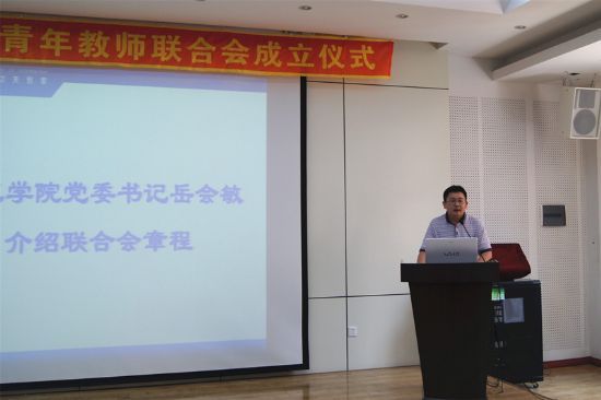 院党委书记岳会敏介绍了《化工学院青年教师联合会章程》,包括青年教师联合会的性质、工作目标、组织机构等内容。他希望通过青年教师联合会这一平台,加强青年教师之间的沟通与交流,推动教学育人、实践育人、科研与人、管理育人、服务育人工作的开展。
