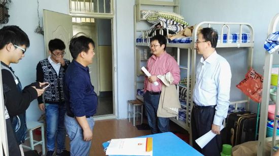 9月10日下午,化工学院院长黄玉东、党委书记岳会敏、院长助理张旭及辅导员赵越走访了2015级新生寝室,同大一新生及学生家长进行了深入的交流。 在走访过程中,黄玉东院长向学生和家长们详细的介绍了学校概况、学院现状、各专业发展情况及学生未来的发展规划等。他希望同学们能够珍惜大学生活,重视大一学习,自觉养成良好的学习习惯,为未来成长成才奠定基础。岳会敏书记对安全注意事项、军训相关事宜、户外活动保暖等日常生活问题进行了提醒,并鼓励同学们积极参加各项活动,不断提升自身综合素质,在学习和生活中锻炼自己,使自己成为一名合格的哈工大人。张旭老师向同学们解答了读研深造、就业工作、奖助学金等相关问题。 将近两个小时的走访,学院领导为新生和家长们解答了疑惑,排除了顾虑,送去了关怀,使他们加深了对于学校、学院的了解,对未来的大学学习和生活充满信心。