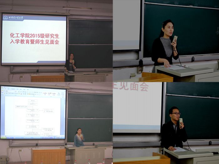 9月11日上午,化工学院2015级研究生入学教育暨师生见面会在诚意楼A12举行。化工学院院长黄玉东、党委书记岳会敏、副院长尹鸽平、院长助理张旭、杜春雨、于淼、应用化学系主任安茂忠、高分子科学与工程系主任刘丽、催化科学与工程系主任甘阳、生物分子工程与化工系主任韩晓军、食品科学与工程系主任卢卫红、化学工艺系副主任姚忠平、高分子科学与工程系副主任龙军等出席了见面会,化工学院2015级秋季学期入学的139名硕士研究生和49名博士研究生参加了见面会。会议由研究生协理员王玉楠主持。 会议第一部分为研究生入学教育。博士生教学秘书王晶详细讲解了研究生课程的选定、博士生培养环节要求等一系列研究生培养细节;硕士生教学秘书丛培琳老师详细讲解了硕士生的培养要求和流程,并针对不同类别硕士生如何选课作了具体说明;研究生兼职辅导员高金龙针对硕士新生强调了研究生手册中关于开学注册、三助工作、社会实践等内容;研究生协理员王玉楠为新生介绍了学校的各项管理规定,并对研究生手册做了更为详细的解读,对各位研究生做出了明确的外出安全要求,鼓励博士生积极参与国际学术交流。 在随后进行的师生见面会中,院长黄玉东教授代表学院对全体2015级研究生的到来表示诚挚的祝贺和热烈的欢迎,他从学校和学院的发展历史概况、学院师资队伍、学科建设、科学研究、人才培养、太阳集团合作以及近几年取得的成绩等方面详细介绍了学院的办学特色和育人理念,并勉励同学们要具备坚定的信念和社会责任感、端正学风、勤于思考、培养太阳集团能力和创新意识,切实提高自身的学术水平和综合素质,为国家和社会贡献自己的力量。副院长尹鸽平教授对化工学院研究生培养目标、行为准则、培养环节进行了详细介绍,针对安全保密、学术道德、培养年限、工作时间、毕业要求等方面做出了明确要求,最后她祝福全体研究生都能顺利的完成学业,为化工学院的建设增添一份力量。 会后,2015级硕士研究生参加了导师见面与互选会,确定了自己的导师、研究方向以及研究生课程。