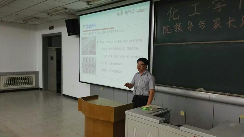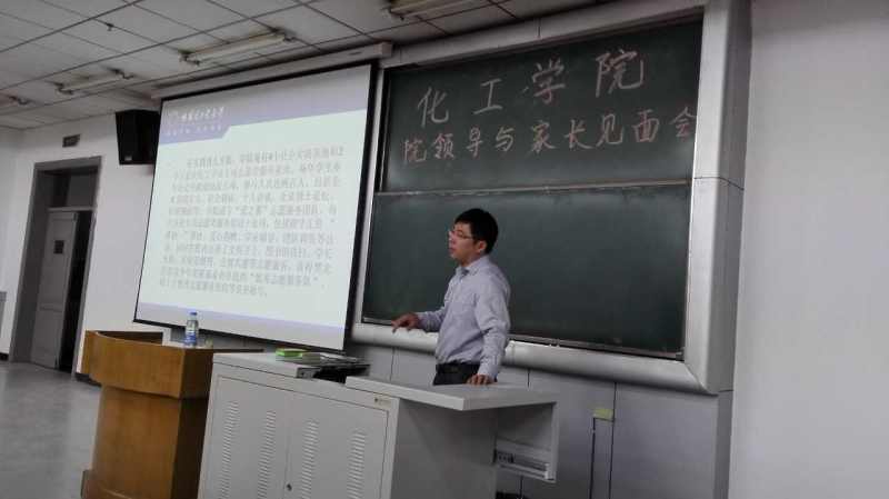 9月11日晚18:30,化工学院2015级新生家长见面会在二校区主楼B21举行,化工学院副院长孟令辉教授、食品科学与工程系主任卢卫红教授及新生家长参加了会议,会议由院长助理张旭老师主持。 会上,副院长孟令辉教授代表学院对新生家长的到来表示热烈欢迎,并从发展历程、师资队伍、学科建设、专业特点等方面介绍了 卢卫红教授介绍了食品科学与工程系整体情况及发展前景,详细讲解了近年来食品科学与工程系所取得的教学科研成果,他希望各位家长能够积极同学院保持联动,尽快帮助学生适应大学生活。之后,张旭老师为各位家长介绍了学院学生工作的整体情况,分析了化工学院2009-2015年本科毕业生去向,并对学院在学生能力提升及学业支持等方面的举措进行了详细解读。 最后,院领导就学生家长提出的奖助学金、保研政策、出国深造等问题进行了深入的解答。