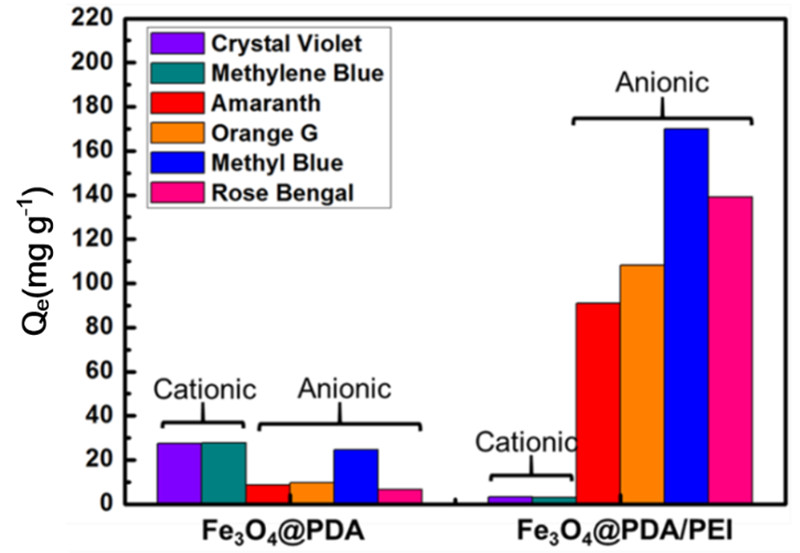 近日,化工学院15级硕士研究生生郭靖作为共同第一作者在英国化学会《材料化学A》 《Journal of Materials Chemistry A》(影响因子7.443)期刊上发表了文章《具备高再生能力和抗碱能力、受贻贝启发制备含超薄层的磁性纳米粒子用于染料的智能选择性移除》(《Highly regenerable and alkali resistant mussel-inspired magnetic nanoparticles with ultrathin layer for smartly selective removal of organic dyes》)。我院邵路教授为该文章通讯作者。本研究成果为郭靖同学在哈工大化工学院2011级高分子专业本科就读时期研究产生。 仿生材料多巴胺在水处理中具有广泛的应用前景,尤其是其聚合后形成的聚多巴胺可作为吸附材料使用对污水进行净化。但是,再生性差、耐碱性差等因素制约了其在水处理中的实际应用。该研究首次通过多巴胺在磁性载体Fe3O4表面自聚合过程中加入聚乙烯亚胺,使聚乙烯亚胺参与到多巴胺的聚合反应中,制备出具有超薄吸附层的磁性纳米吸附材料。制备出的磁性纳米吸附剂不仅具有极高的再生能力和耐碱能力,而且其对于阴离子型染料的吸附能力大大提高,同时具备对于阴离子型物质的选择性吸附和分离能力。 http://pubs.rsc.org/en/content/articlelanding/2015/ta/c5ta04840k