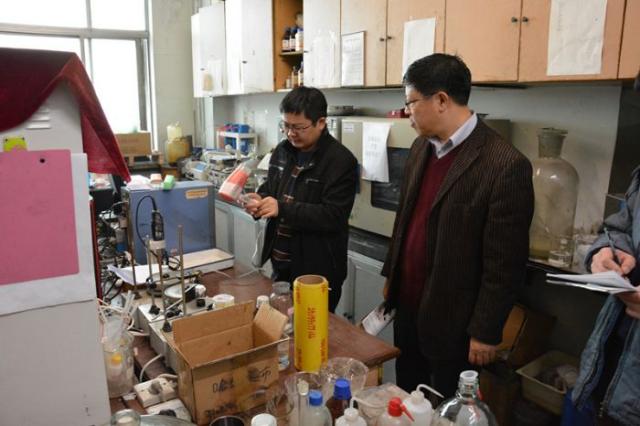 为积极响应学校保卫处等相关部门号召,进一步落实学校安全规章制度相关要求,12月23日,化工学院开展实验室安全检查工作,化工学院党委书记岳会敏、副院长孟令辉、实验室安全负责教师刘立洵和院办主任张继峰对学院各实验室进行安全防火和室内卫生检查。