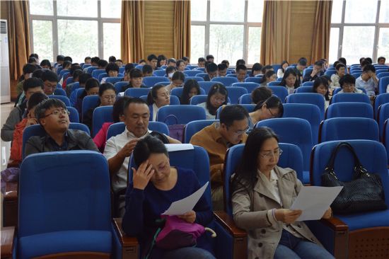 5月24日下午,太阳成城集团tyc234cc在活动中心214会议室召开全院教职工大会,会议由党委书记岳会敏主持。