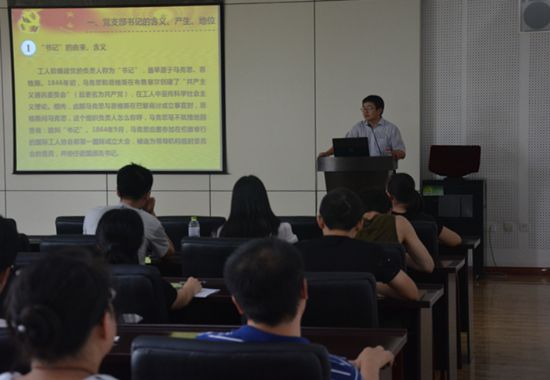 岳会敏从“书记”的由来为切入点,引出了党支部书记的含义、产生办法及地位和作用,并结合党章和中央有关规定,介绍了教工党支部和学生党支部的主要工作职责,强调了党支部书记的主要作用和基本工作素养要求。在党支部的工作制度方面,岳会敏对党支部“三会一课”、民主生活会、组织生活会、联系群众、党支部考核和民主评议党员等制度进行了详细介绍。最后,他结合党支部工作中存在的突出问题,对党支部工作提出了要求,要求党支部书记和支部委员结合“两学一做”学习教育,提高把握党建工作关键环节的能力和水平。
