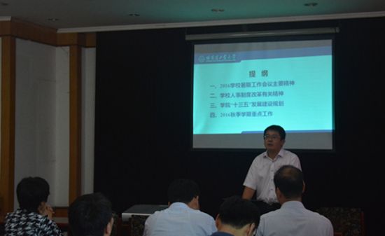 党委书记岳会敏首先传达了校党委书记王树权、校长周玉在学校暑期工作会议上的讲话精神,并对安实副校长关于人事制度改革的报告内容和各试点单位人事制度改革的方案情况进行了详细介绍。岳会敏表示,学院此次人事改革要努力突破“求稳怕乱、按部就班、止步不前”的思想禁锢,从“稳、引、培”三方面入手,突出优劳优酬和多劳多得、激励和压力并存的原则,着重做好教师核岗定编、岗位分类、岗位考核、绩效分配、团队建设等方面的方案制定,统筹推进人事制度改革、教育综合改革。随后,岳会敏介绍了学院“十三五”规划,从发展目标、发展思路、发展任务和建设措施等方面全方位勾勒学院未来五年发展规划,指出各系、所、中心要精华、细化“十三五”规划,认真谋划好未来发展思路、找准未来发展方向,明晰哪些方向“有所为”、哪些方向“有所不为”、哪些方向要集中力量“重点为”,敢于担当、主动作为,努力向“建成国际一流水平的化工学科”的目标大踏步迈进。最后,岳会敏对学院2016年秋季学期重点工作进行分解安排,重点围绕“两学一做”学习教育、人事制度改革、学院党代会、教代会、新大楼搬迁规划等工作进行逐项布置,成立了人事制度改革工作小组、学院党委第一次党代会筹备工作小组,对秋季学期学院教学、科研、师资队伍建设、人才培养方案修订等重点工作进行布置。
