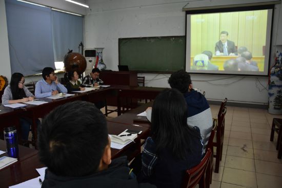 与会人员观看了全国高校思想政治工作会议新闻视频,学习了习近平总书记重要讲话精神。学工办主任、研究生协理员王玉楠、辅导员赵越、李宏涛分别结合本职工作就如何贯彻落实会议精神畅谈了学习心得和体会,并承诺要在工作中明确教育目标、把握教育规律,努力形成有目标、有体系、有实效的思想政治工作格局。导师代表陈刚、班主任代表左朋建结合导师育人职责和班主任工作职责,表示要进一步增强自身的责任感和使命意识,守好自身课堂教学的“一段渠”、种好自身教书育人的“责任田”,激发学生学习动力,引导学生成长成才。学生组织负责人代表李江、赵丹和原因,分别就学生组织、学生干部和学生党员应该如何更好地服务于自身和身边同学的成长、如何在实现中国梦的伟大实践中实现个人的青春梦想等畅谈了学习习近平总书记重要讲话精神的体会。