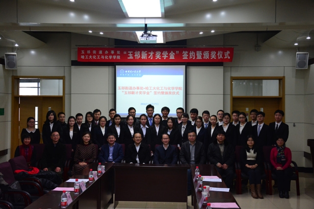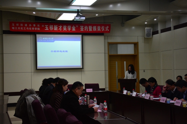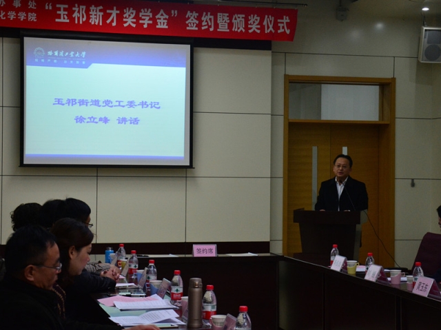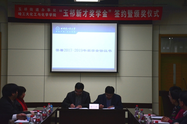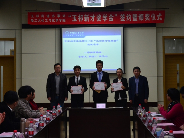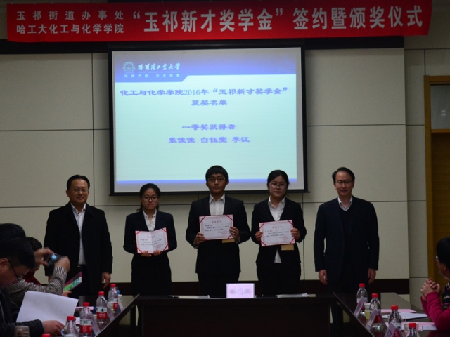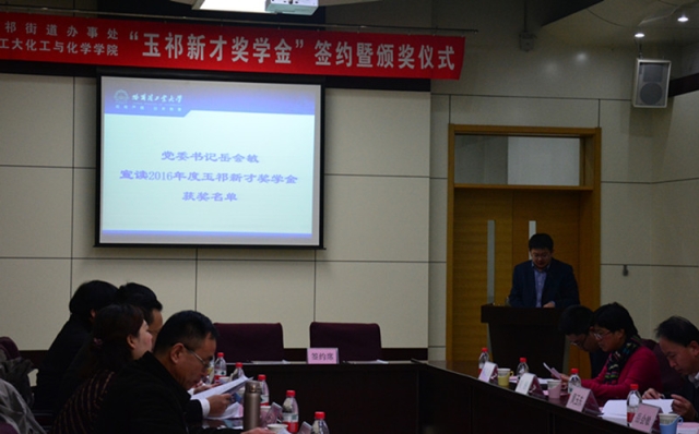 王玉楠老师介绍了2016年度“玉祁新才奖学金”的评选过程。岳会敏书记宣读了获奖学生名单,并与玉祁街道配套区主任秦羽签署了2017-2019年奖学金协议书。与会嘉宾为获得“玉祁新才奖学金”的同学们颁奖。