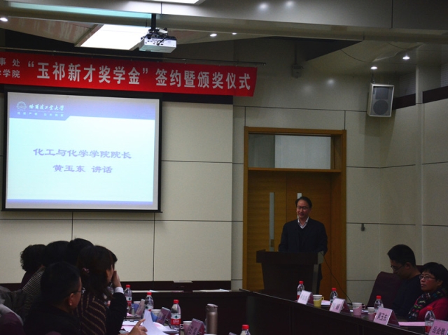 院长黄玉东代表学院对玉祁街道办事处在人才培养、学生社会实践、教师研究成果孵化等方面给予的支持表示感谢。黄院长表示,学院将一如既往的严格按照奖学金宗旨,公平公正进行评选,不断促进学生成长成才。他希望获奖同学以此为起点,刻苦学习,勤于钻研,要怀揣对社会的感恩之心和责任感不断前行。