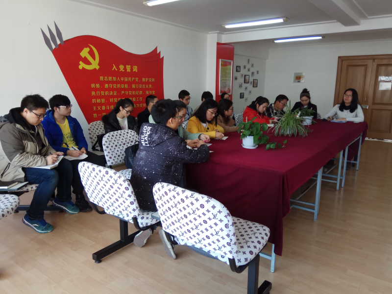 王玉楠为大家解读了习近平总书记在全国高校思想政治工作会议上的讲话。高校思想政治工作是做人的工作,博士生是至关重要的团体,对博士生的思想水平、政治觉悟、道德品质、文化素养的教育就显得尤为重要,博士生党员作为博士生中的先进团体,要充分发挥先锋模范作用。王老师重点强调了《关于加强和改进新形势下高校思想政治工作的意见》中关于加强学生党支部特别是研究生党支部建设的内容,要求大家充分发挥党支部战斗堡垒作用,继续发挥博士生党员工作室对博士生党员的日常监督管理,坚持“两学一做”学习教育。随后,王老师传达了校党委书记王树权同志的讲话精神,向大家介绍了学校党委《关于加强和改进新形势下思想政治工作的实施方案》的主要内容,强调博士生党员要加强与身