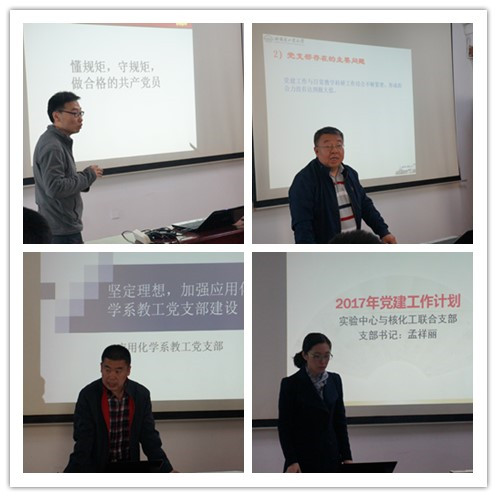 会上,各教工党支部书记结合支部自身实际,对党支部存在的问题、党支部的建设目标、党支部建设的具体工作措施及2017年全年的党支部计划进行了汇报。