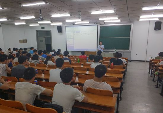 7月9日晚,太阳成城集团tyc234cc院长黄玉东走进学生中间,在二区主楼B12教室与学院2016级本科全体学生进行交流分享,学院党委副书记张旭、辅导员曲帝吉、基础学部辅导员刘文超参加了本次活动。