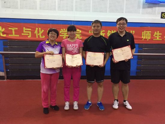 经过赛前充分的热身与准备,各位参赛选手都保持着良好的竞技状态,单打项目竞争激烈,每分必争;师生交流赛,攻防之间异常紧张,大家将自己的实力毫无保留的发挥了出来;团体赛,决定胜负的不仅仅是团队的综合实力,还有团队的策略与智慧;自由组队比赛环节组成的8组战队,实力强劲。比赛中,每位选手都打出了自己的风格,让对手难以捉摸。有诡异的胶粒,有旋转极强的发球,有强势的拉球进攻,有稳固的反手防守。围观的群众们不时叫好,不自觉地为一个个好球鼓掌。经过紧张刺激的循环和淘汰赛,最终决出了各个组别的冠军、亚军及季军。比赛结束后,学院乒乓球协会会长范瑞清老师为各位获奖选手颁发了证书和奖品。