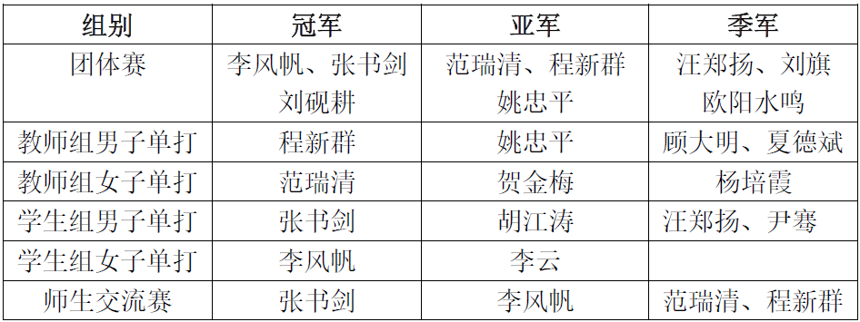 第二届“新锐杯”乒乓球赛师生获奖名单