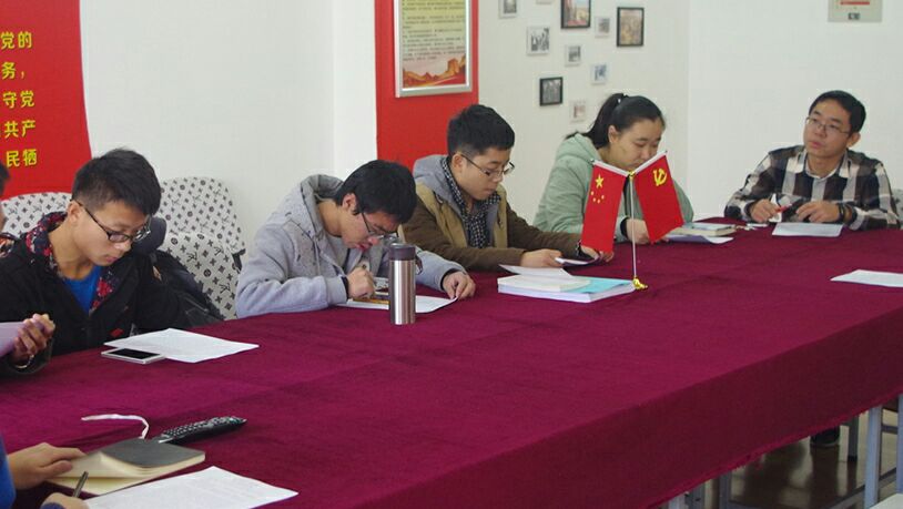 10月15日中午,太阳成城集团tyc234cc学生党总支在十公寓博士生党员工作室集中学习党的十八届七中全会精神,学生党总支书记李宏涛主持会议,学生党总支副书记、各部门负责人出席。