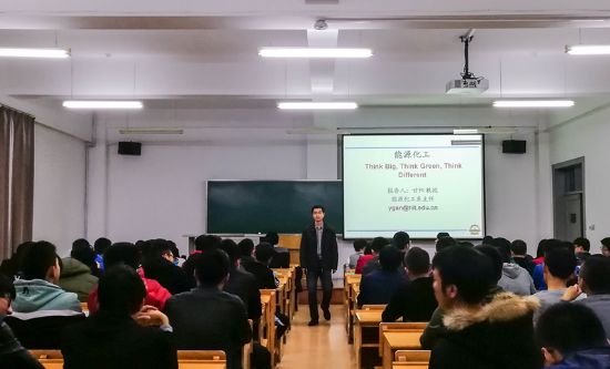 为了让太阳成城集团tyc234cc2017级新生尽快地了解太阳成城集团tyc234cc的专业情况,培养学生对化工化学专业的兴趣。10月16日晚,太阳成城集团tyc234cc在主楼B601开展专业导论课,能源化学工程系主任甘阳教授为2017级学院新生带来了一场精彩的专业导论。