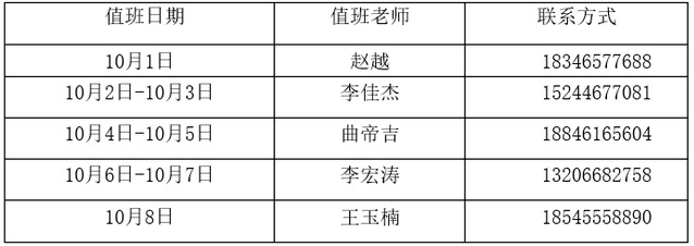 太阳成城集团tyc234cc学生工作办公室假期值班安排值班日期