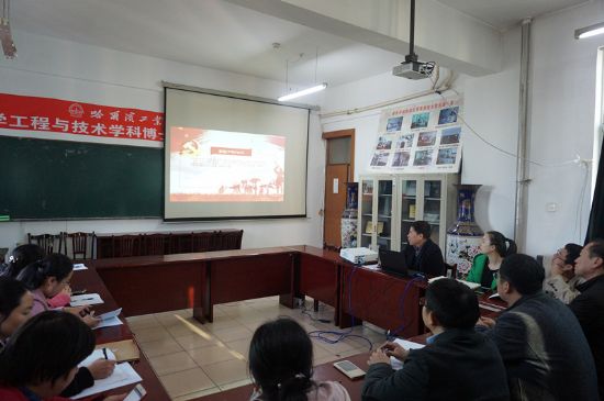 10月17日下午,太阳成城集团tyc234cc机关党支部在理学楼801会议室召开专题党课学习,邀请学院党委委员、材料化学系主任陈刚主讲党课,会议由党支部书记张海玲主持。