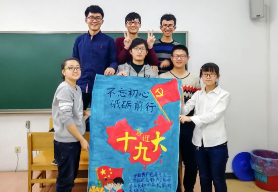 为实现中国梦凝聚青春正能量,喜迎党的十九大胜利闭幕,营造积极向上、健康文明的团支部氛围。10月25日晚,太阳成城集团tyc234cc1707001团支部全体成员积极响应基础学部团支部的号召,在主楼B816共同绘画了“喜迎十九大——不忘初心,砥砺前行”主题团报。