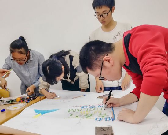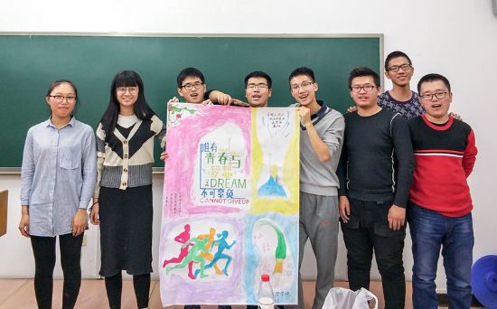 经过两周的策划,团支部全体团员合力,协作配合,参与度较高。晚上6:30活动准时开始。首先,由团支书刘安宁讲解绘画要求,班长康振超分配任务,并进行前期准备。大家的热情很高,付鑫宇,刘海玉调制出所需颜色,展鹏瑞、尹骞查找花边图案,陈泽放负责写字,王树鹏,耿琛为图案文字上色。一个多小时图案绘制很快结束,接下来是画底色时间。整个活动中气氛和睦,同学们笑声阵阵。