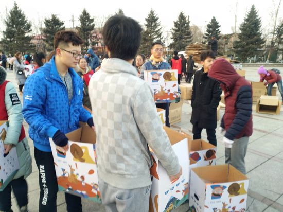 此次活动由团支书林洋恺,学习委员刘炳霄组织,团支部全体同学参与。首先团支部与太阳成城集团tyc234cc“爱之翼”志愿者协会成员集合并一同前往黑龙江科技大学。在由领队宣布活动的具体内容和小组分组情况及各组组长之后,进行活动的集体拍照留念。之后1614306团支部的同学们跟随第1组第二队队长刘炳霄前往工作地点科技广场,在寒冷的天气条件下,以小组为单位进行包裹的整理与分装,同学们拿过一个个空的纸壳箱,经过各个物品区时有序地将例如棉服,棉鞋,书包,书本等各种生活学习必须物品有序分装于箱内,之后交于负责打包的小组打包完成装箱。全部箱子打包完毕后交由运输小组运走,此次志愿服务活动圆满结束,志愿服务时长达5个小时。