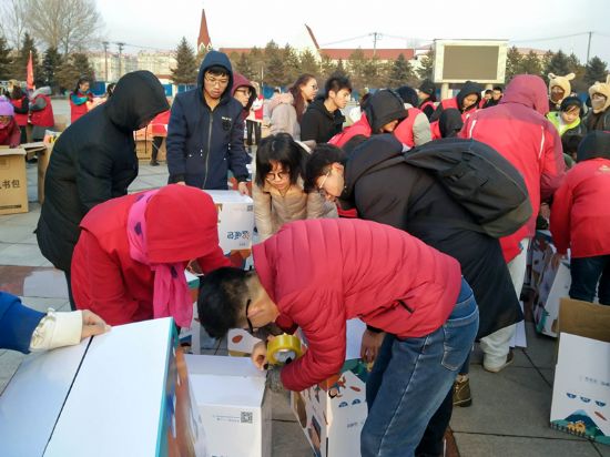 上午10点50分,1614305班全体同学准时于七公寓楼下集合,一同前往黑龙江科技大学。活动组织方首先对参与此次活动的志愿者表示感谢并讲述了活动流程及意义。活动主要分为两步进行:首先将所有物资从货车上搬运到科技广场并分类排好,然后将御寒保暖的衣服和学习用具等12件物品分别装入“温暖包”中,打包封好。此次志愿活动的口号为:帮助别人,快乐自己。大家对此产生共鸣,情绪高涨,并在接下来的工作中团结一致、听从指挥,顺利高效地完成了分配的任务。此外,在活动过程中王洪刚同学发现其他小组人手不够时,主动帮助其他小组成员分担工作;严玲慧同学主动去捡遗留在广场上的垃圾,体现了一名哈工大人的基本素质。任务结束后,1614305班同学聚在一起,不由得心声感慨,在言论中流露出对贫困小朋友的同情与关怀,并表达了对此次活动的认可。分装活动耗时长且任务量大,很多志愿者们都是饿着肚子顶着严寒将物资排序并装箱,彰显着志愿者们的奉献精神。尽管天气严寒,但是同学们的心却是暖的。