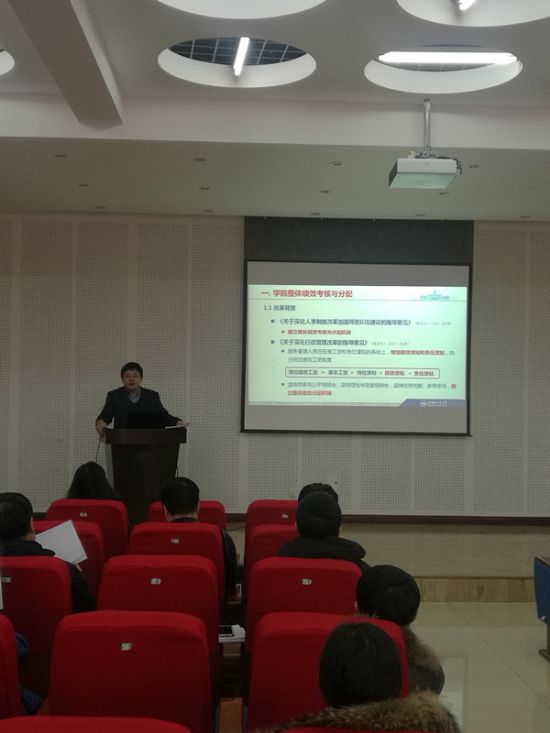 岳会敏传达了学校人事工作会议精神,详细介绍了学校对学院整体绩效考核分配原则、准聘岗聘任工作情况及神州论坛准备工作总体安排。岳会敏对学院近期进行的年度考核工作进行了布置和安排,他强调,各部门负责人和党支部书记在绩效考核中要认真核定工作量,突出关键业绩,严格把关,确保学院年底考核顺利进行。