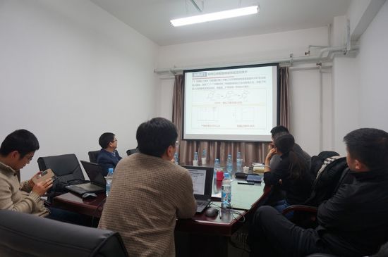 岳会敏对刘贤豪副院长一行的到来表示热烈欢迎,介绍了学校和学院的基本情况,希望能通过交流进一步加深与乐凯集团研究院的深度合作。刘贤豪介绍了乐凯集团的总体情况,并重点介绍了集团研究院的定位和规模,以及研究院下属各个研究室的研究方向。会上,姜波教授介绍了其在先进涂层材料、薄膜材料等方面的研究成果,王志江副教授介绍了其在隐身材料等方面的研究成果。